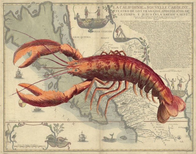 Lobster print on Nautical Map